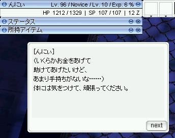 (いくらかお金をあげて助けてあげたいけど、あまり手持ちはないな)こんばんはー。 (いくらかお金をあげて助けてあげたいけど、あまり手持ちはないな)おやすみなさいー。